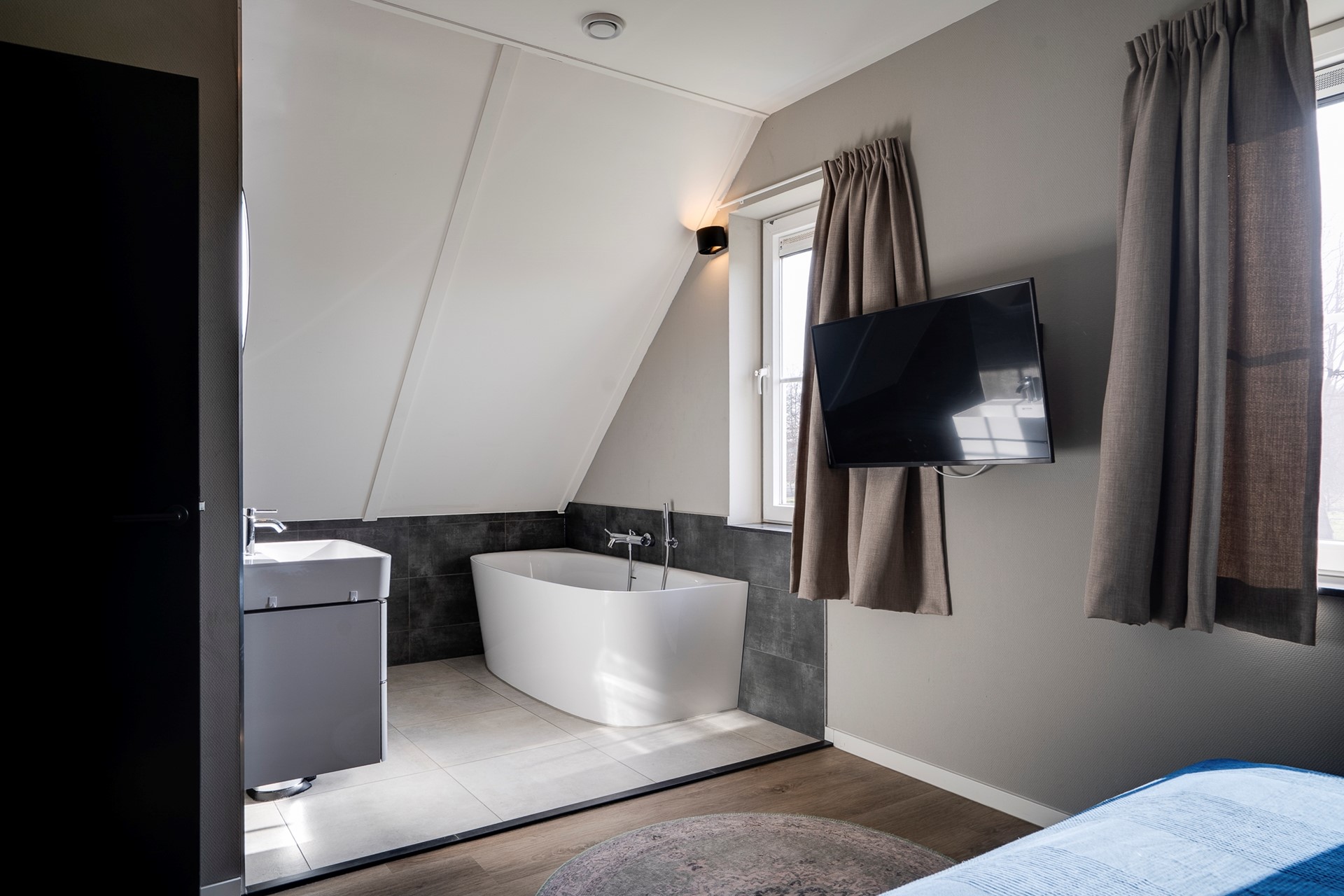 • Masterbedroom met luxe ensuite badkamer voorzien van inloopdouche, ligbad en wastafelmeubel